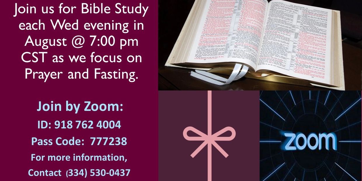 Each Thursday, we invite you to join us for our Weekly Bible Study, through ZOOM at 7:00 pm CST. It's a time to hear the Word of God and join in group discussion. If you are interested in being a part of the Zoom Bible Study, Click the zoom link: